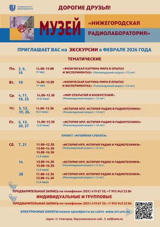 Расписание экскурсий на февраль 2026 года
